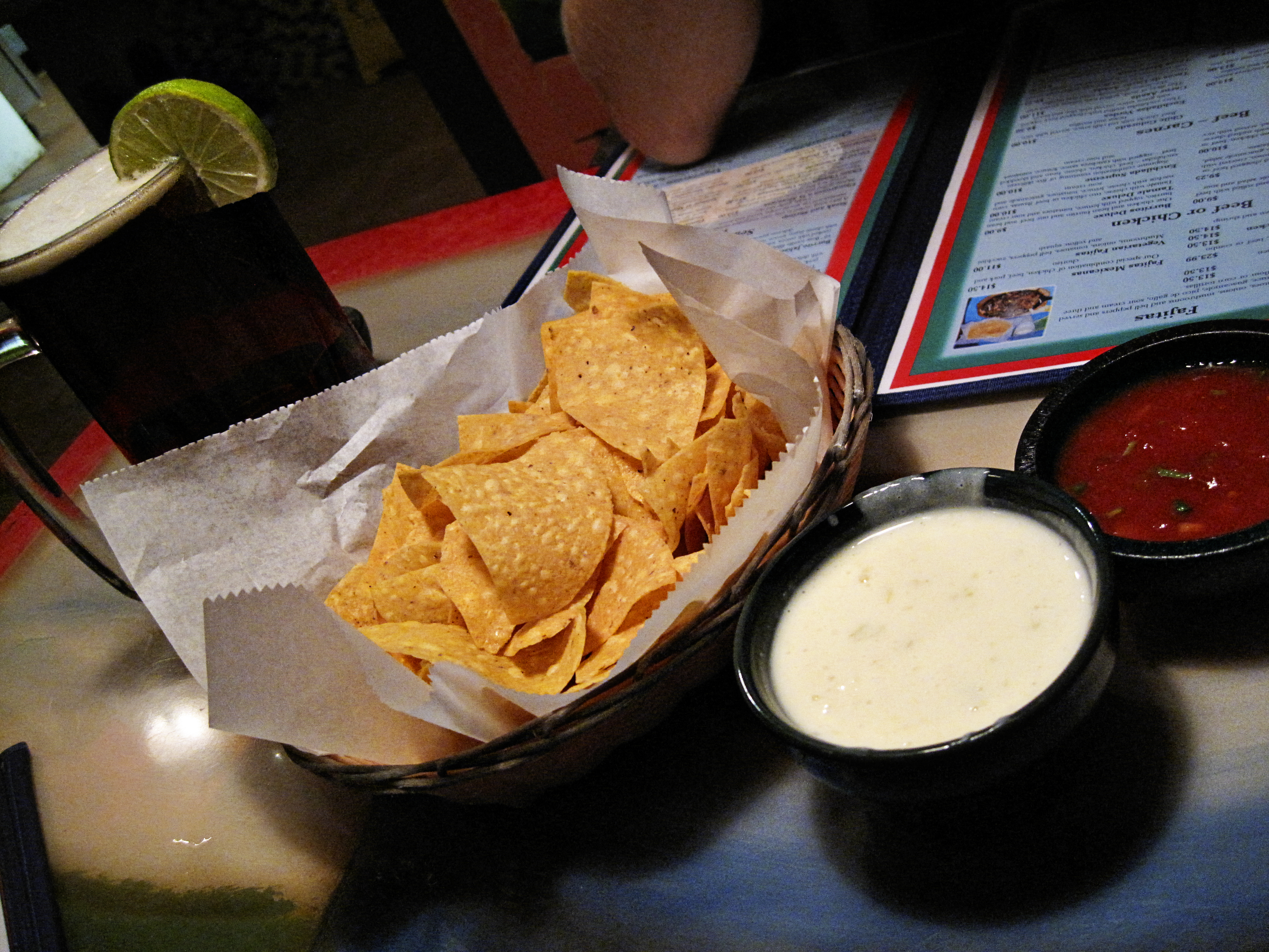 Today was a rough day at work. For both Andy and I. I’m dealing with the new site updates and he’s on a big deadline and it’s been stressful and frustrating to say the least. Neither of us could muster the energy to make dinner, so we decided to swear off computer work for the evening and go out for dinner. La Fiesta refreshed us! Here’s a photo of, what should be, the 4 food groups. Honestly, I’m not sure if I could live without them!