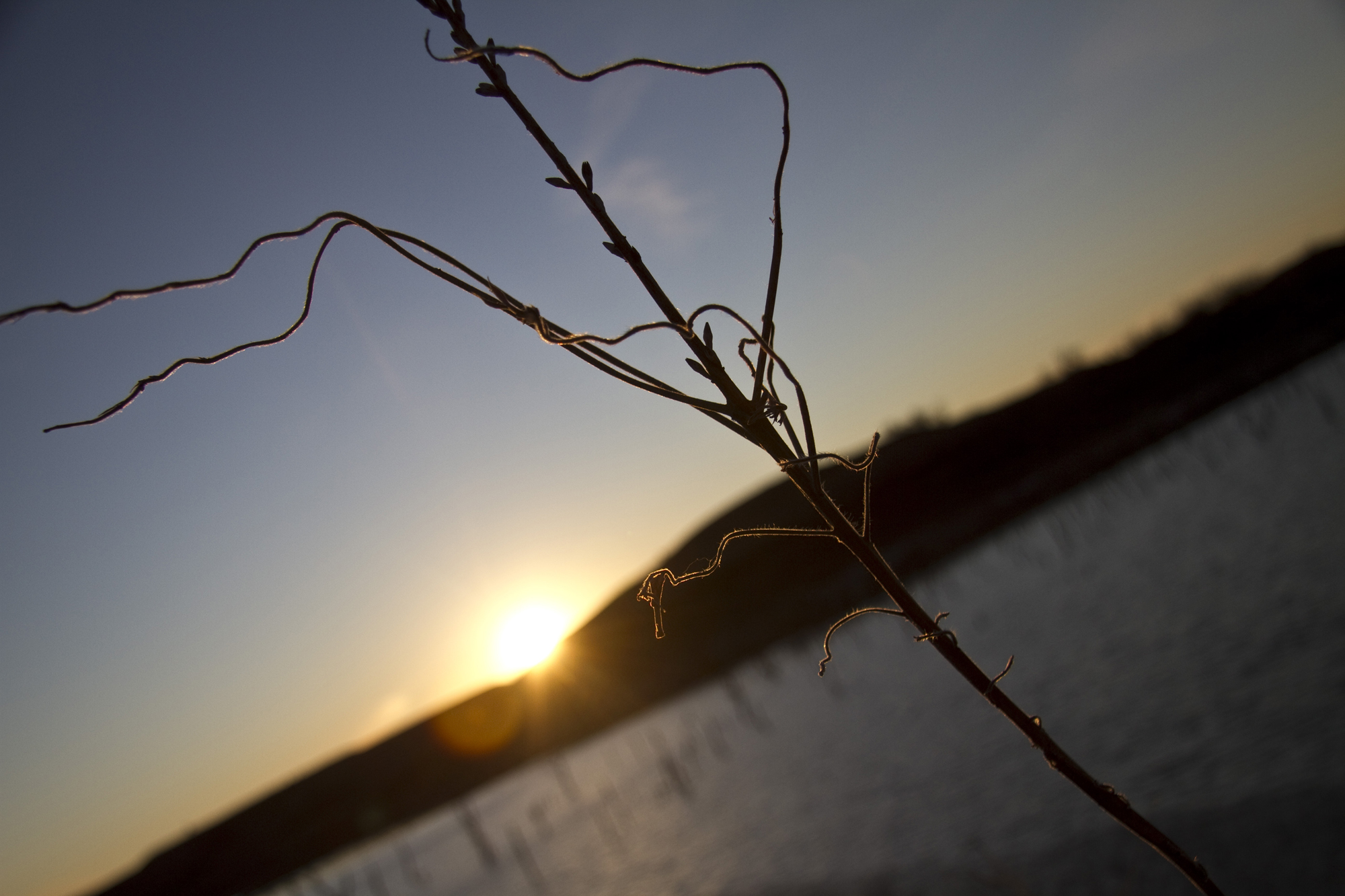 I had some time today, so I wanted to get out and put some effort into getting a nice photo. As the sun was setting I drove out to the lake and got some nice photos of the dam, lake, the cove at the yacht club, and as I was driving away, some weeds against the shore. I left the final choice up to Andy and the very last one was is favorite: