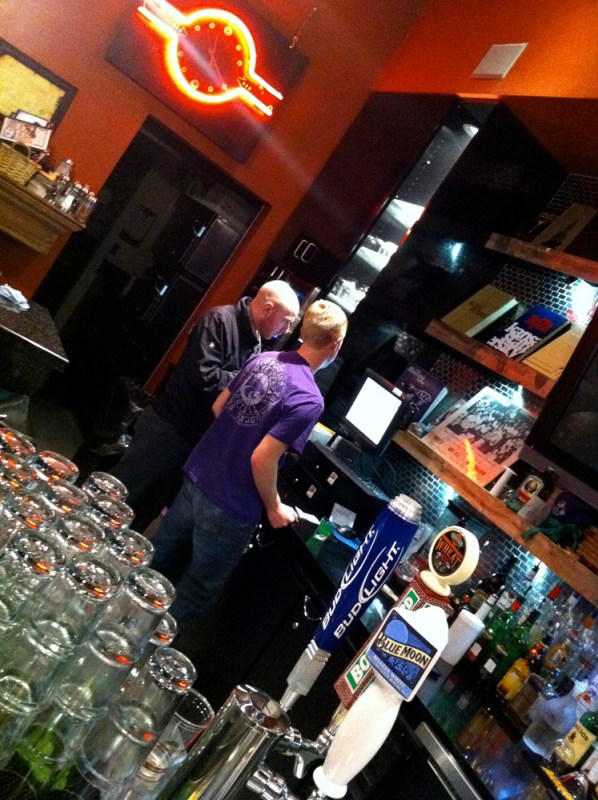 Somehow tonight turned from a quick, light dinner out into a full on, big night out! It just… evolved. There was good food, then good drinks, and eventually good company (followed by more drinks). Aside from meeting and befriending the bartender, the highlight of the evening was when Eric took his Contemporary Issues in Controlled Beverages (aka: know your alcohol) online quiz on the computer behind the bar. Absolutely. Perfect.
