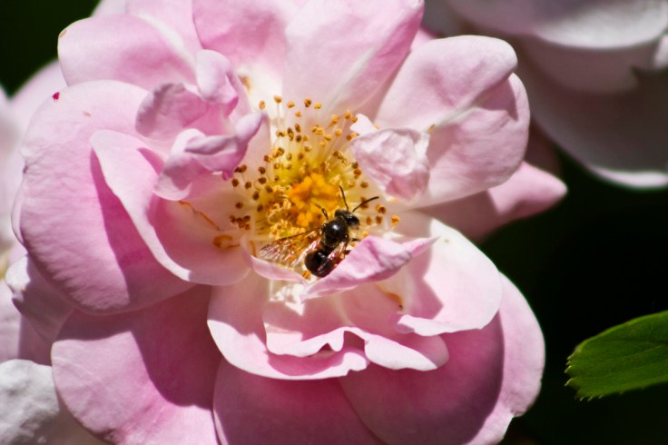 A quick walk around the neighborhood for an afternoon break let me catch this bee in action. He was swimming in this flower!