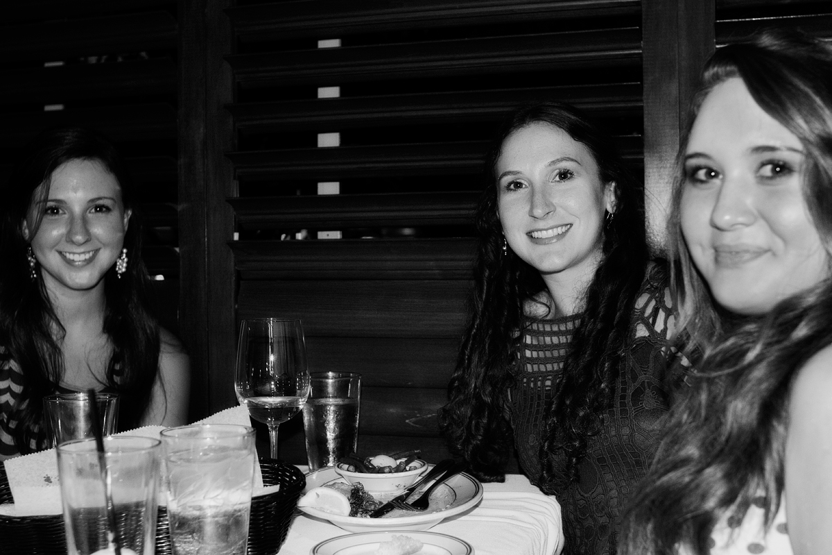 Today we hopped on a plane to Houston, TX for my cousin Andrea’s wedding. A series of delays nearly kept us from the rehearsal dinner, but we ended up making it just in time and had a great dinner with the family! I expected to take a few more photos, but we had some distractions and this ended up being the best of the evening. Here are my lovely cousins and sister. 🙂