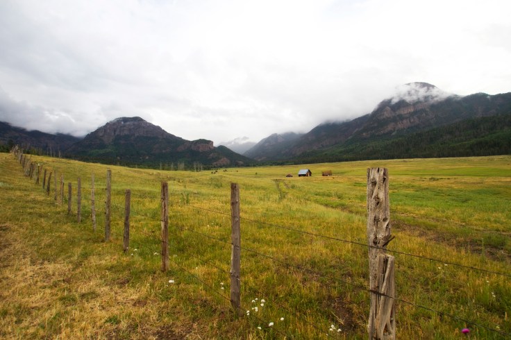 Andy and I went on a several hour hike today. We had some great views of canyons, meadows and rivers. Andy stopped to do some fishing for awhile, but we were stuck in a (much needed) downpour, so I spent a lot of time huddled under the trees. 🙂