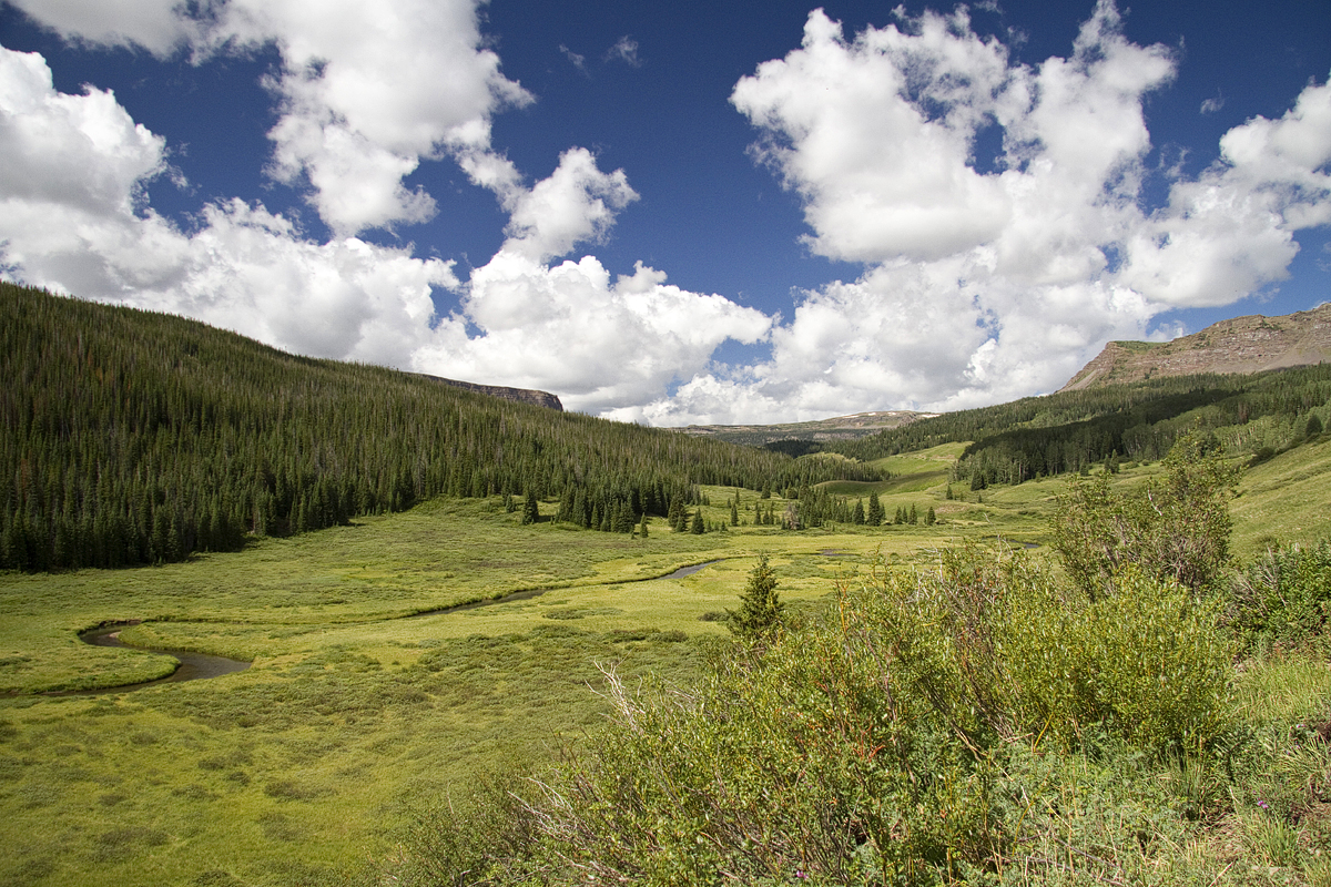 Today we went south of Steamboat Springs to Bear River. Andy, Eric, Christopher and Kelly fished while I read and took photos. Here’s a view of the area from up on the road. Not a bad place to spend the afternoon!