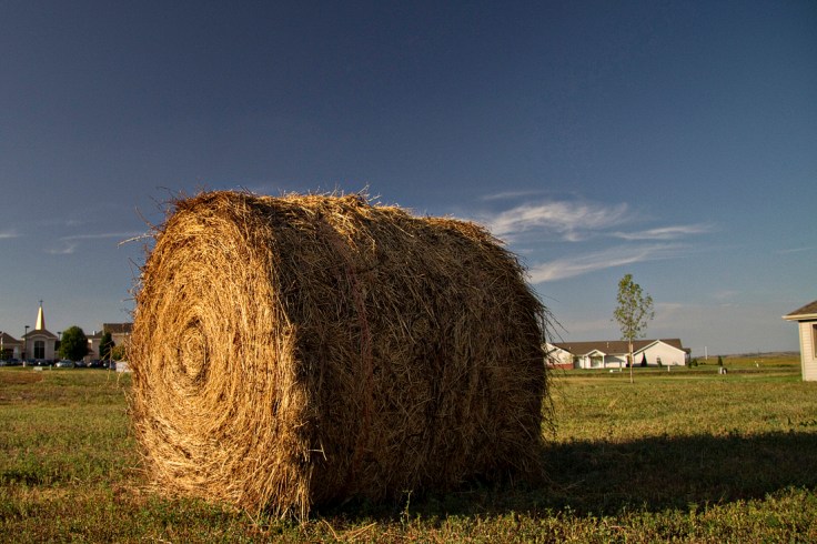 Why there was a sole bale of hay sitting in the yard behind our apartment I don’t know. Well, other than the fact that they rarely mow back there and took advantage of it. But, it was quite oddly out of place all alone in a yard surrounded by a neighborhood.