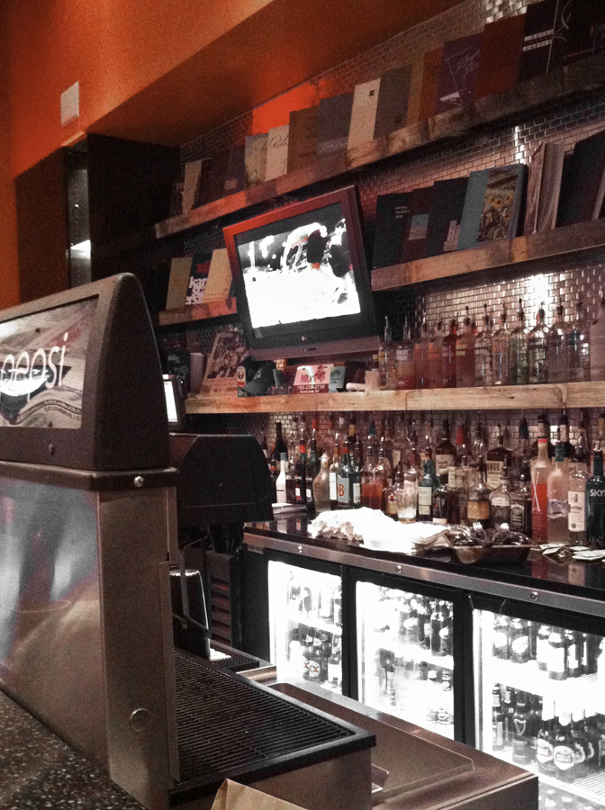 With no TV channels to watch at home, we decided to catch a little of Michael Phelps and the Olympics at a local bar. Can you see him there…?