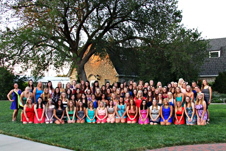 Today sorority recruitment activities began! As the recruitment advisor for Sigma Kappa at K-State, this is the time I prepare for all year. And, for some crazy reason, I do love it! I’ve had the pleasure of taking the chapter group photos at the start of the week for a few years now. Here is a shot of the entire chapter which will be hung, along with the individual class photos, in the hallway for the incoming visitors to see.