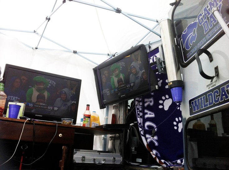We got back to town at about 3am this morning and Andy’s parents were already at our house, in town for the football game. But, of course it was an early 11am game, so we were up and headed out to tailgate around 9am. And. it. was. freezing! Talk about a shock after California, but a shock to everyone. At least we kicked some KU butt and had a great tailgate, as always!