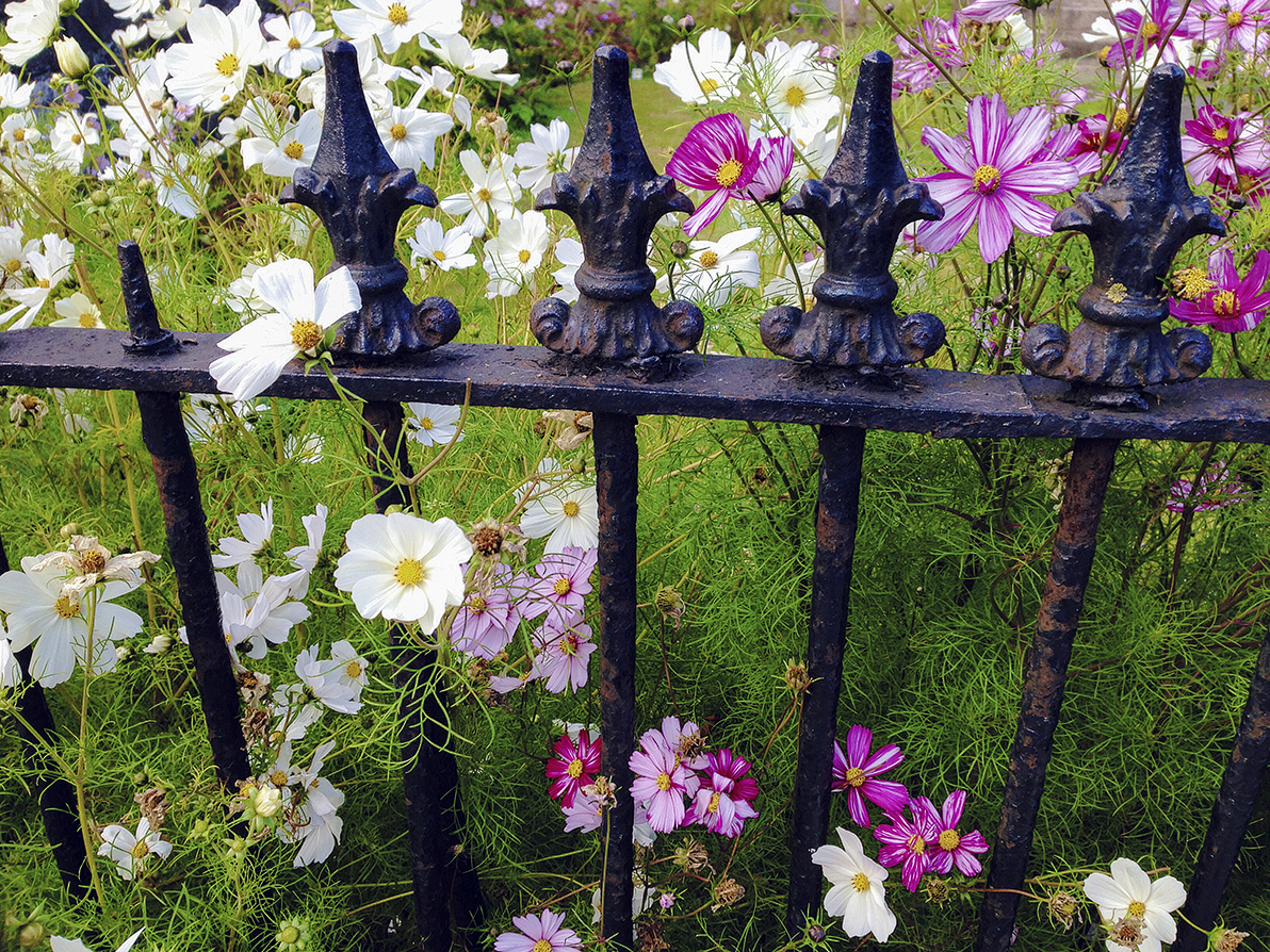 It might be (almost) fall, but the flowers are still blooming. Loving this colorful touch of nature vs. the harsh metal fence.