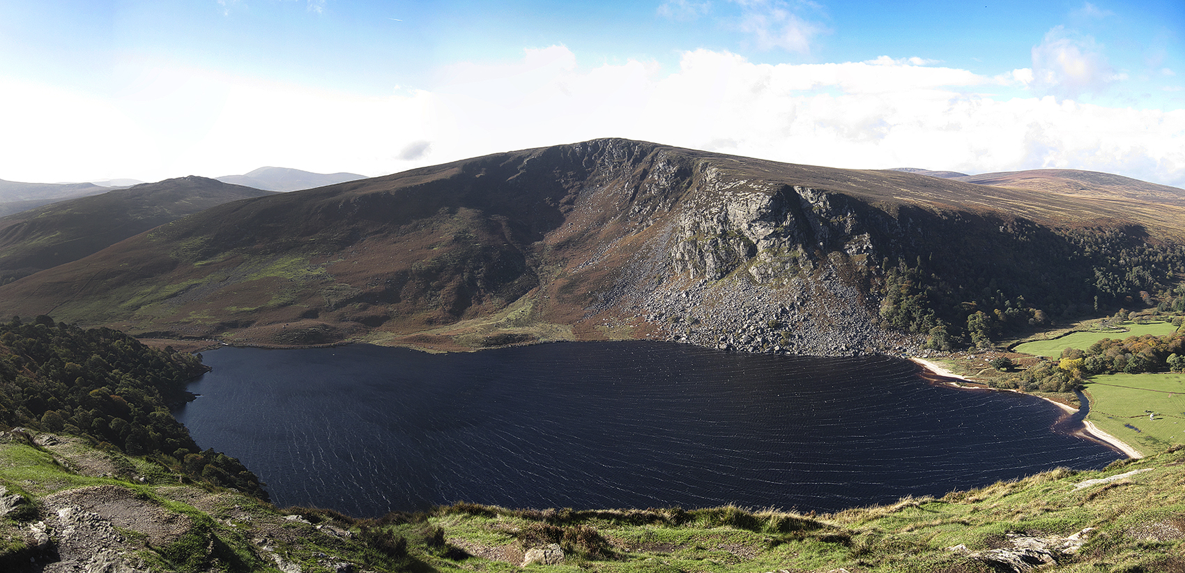 On one last adventure with my visitors, we took a trip to the Wicklow Mountains. One of our most scenic stops was here, overlooking Lough Tay or Guinness Lake. The wind was incredible, but I managed to hold it steady to get this panoramic shot. Fun fact: they added the white sand beach to look like foam on a pint of Guinness!